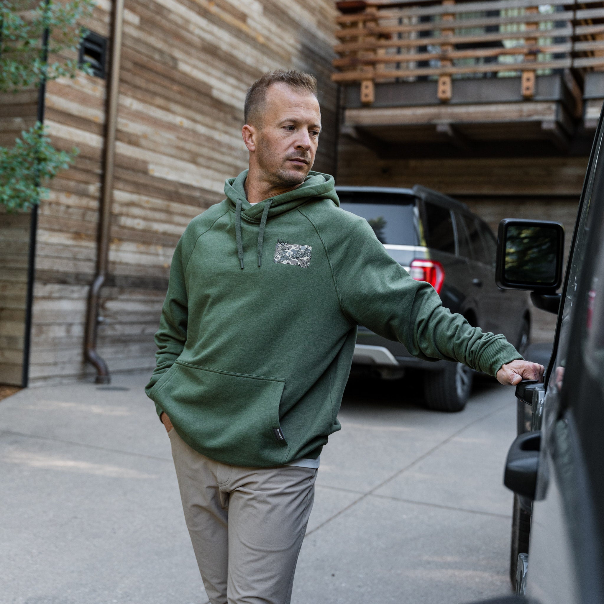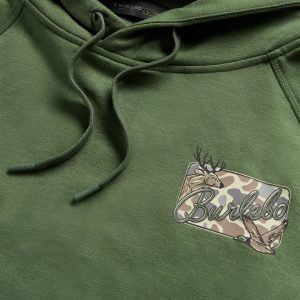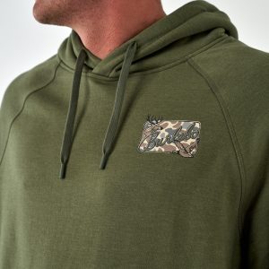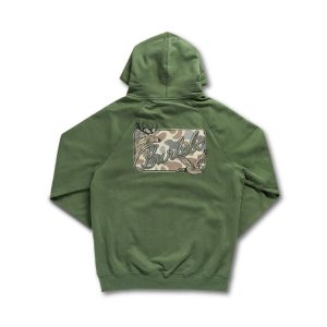 The Deer Camo Patch Logo Fleece Hoodie blends rugged outdoor style with everyday comfort. Made from a soft midweight fleece. this hoodie keeps you warm without weighing you down. The olive colorway pairs perfectly with the bold deer camo patch logo. delivering a classic outdoor-inspired look. Functional details like the drawstring hood. kangaroo pocket. and ribbed finishes make it as practical as it is stylish.