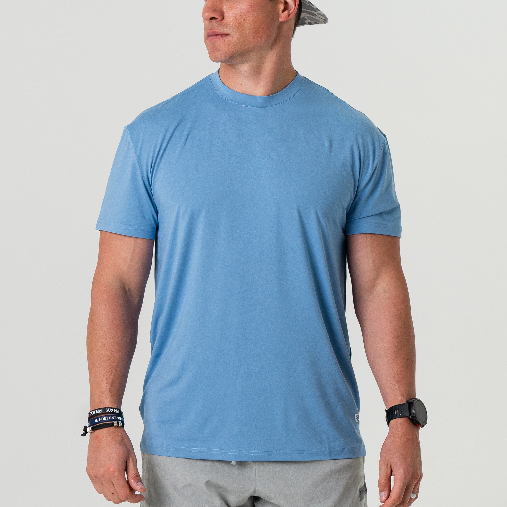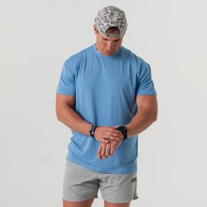 Our Go To Tee. the ultimate companion for your active lifestyle. Crafted from a blend of 91% polyester and 9% spandex. this tee offers superior comfort and performance. ensuring you stay cool and dry throughout the day. With UPF 50 sun protection. you can confidently take on outdoor activities while shielding your skin from harmful UV rays. The lightweight performance fabric is quick-drying and moisture-wicking. keeping you fresh and comfortable even during the most intense workouts. Featuring anti-microbial properties. this tee helps combat odor-causing bacteria. keeping you feeling fresh and confident all day long. Whether you’re hitting the gym. going for a run. or simply running errands. our Go To Tee is the perfect choice for all your active endeavors.