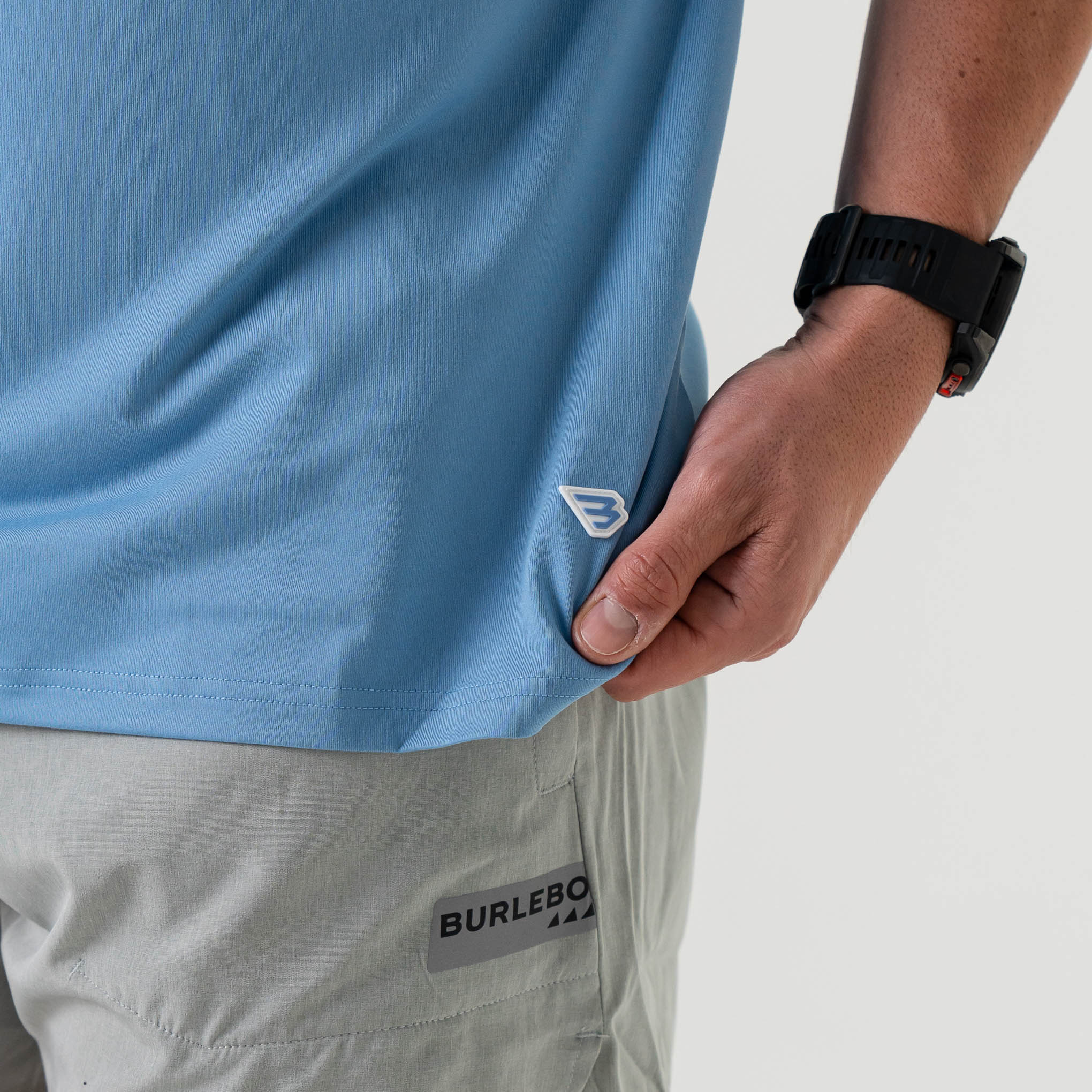 - Lightweight performance fabric is quick-drying and moisture-wicking
