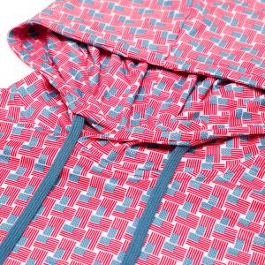 - Full hood with drawstrings