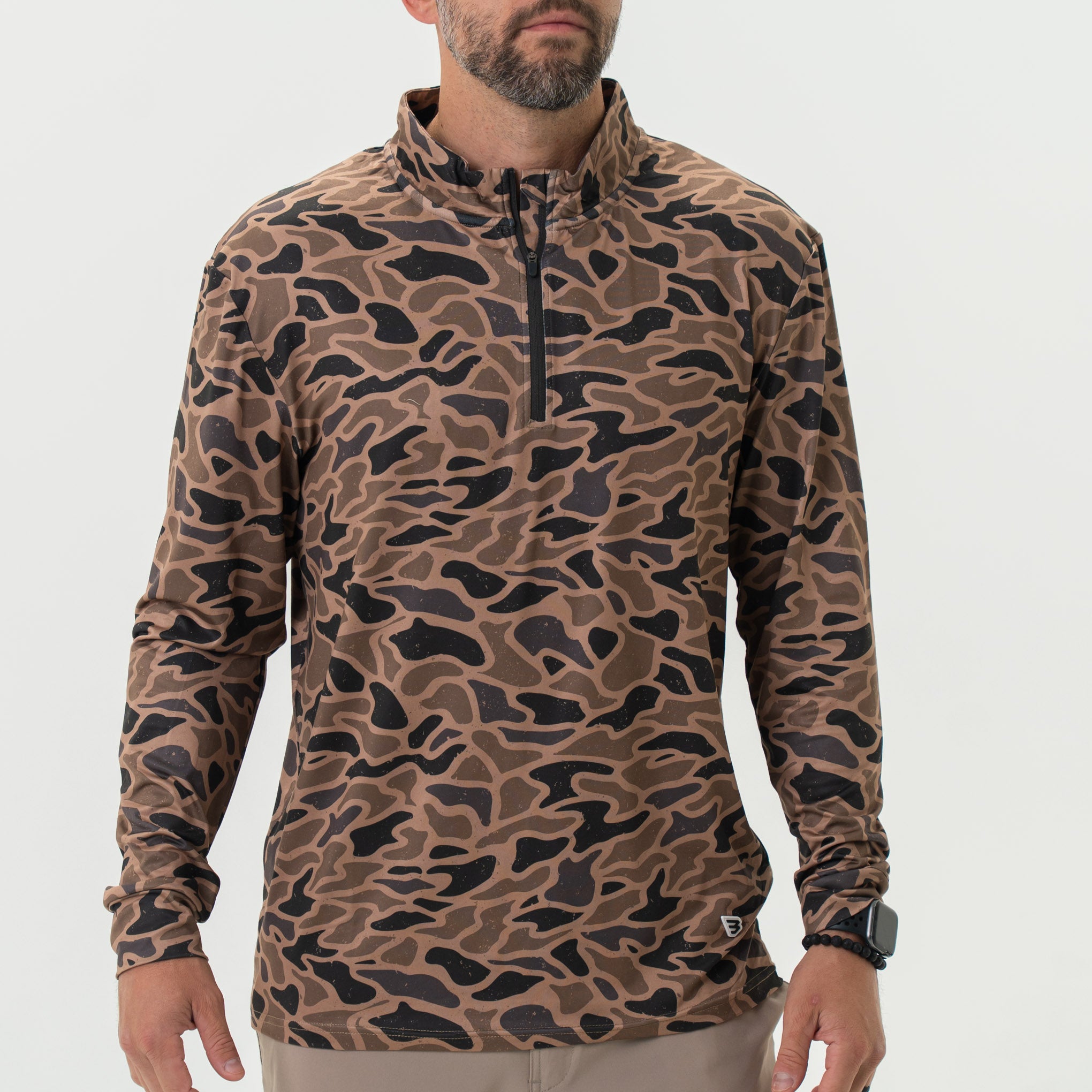 Performance Quarter Zip. the ultimate fusion of style and functionality. A blend of 91% Polyester and 9% Spandex. this quarter zip delivers lightweight performance with every wear. The quarter zip design allows for easy on and off. while providing customizable ventilation to keep you comfortable in any temperature. Featuring UPF 50 sun protection. this quarter zip is your go-to choice for outdoor activities under the sun. The quick-dry. moisture-wicking. and antimicrobial properties ensure you stay dry. fresh. and comfortable throughout your day.