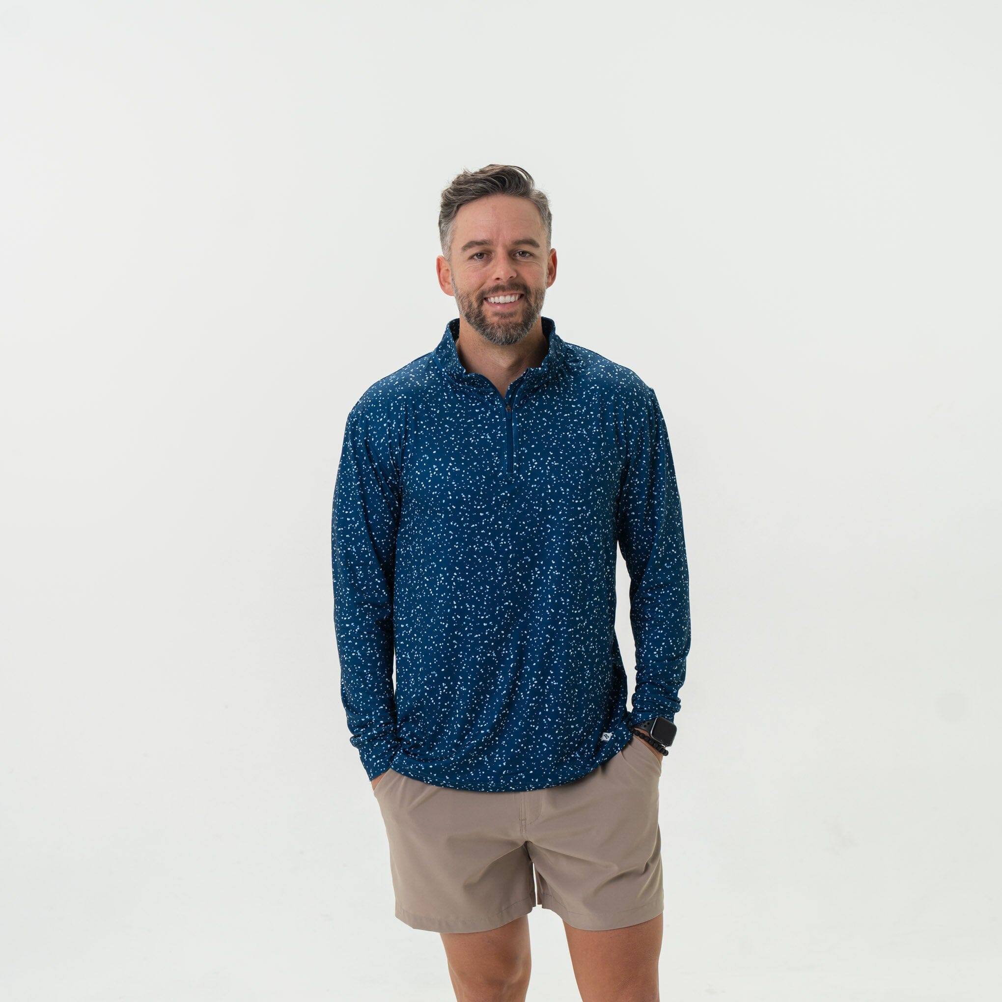 Performance Quarter Zip. the ultimate fusion of style and functionality. A blend of 91% Polyester and 9% Spandex. this quarter zip delivers lightweight performance with every wear. The quarter zip design allows for easy on and off. while providing customizable ventilation to keep you comfortable in any temperature. Featuring UPF 50 sun protection. this quarter zip is your go-to choice for outdoor activities under the sun. The quick-dry. moisture-wicking. and antimicrobial properties ensure you stay dry. fresh. and comfortable throughout your day.