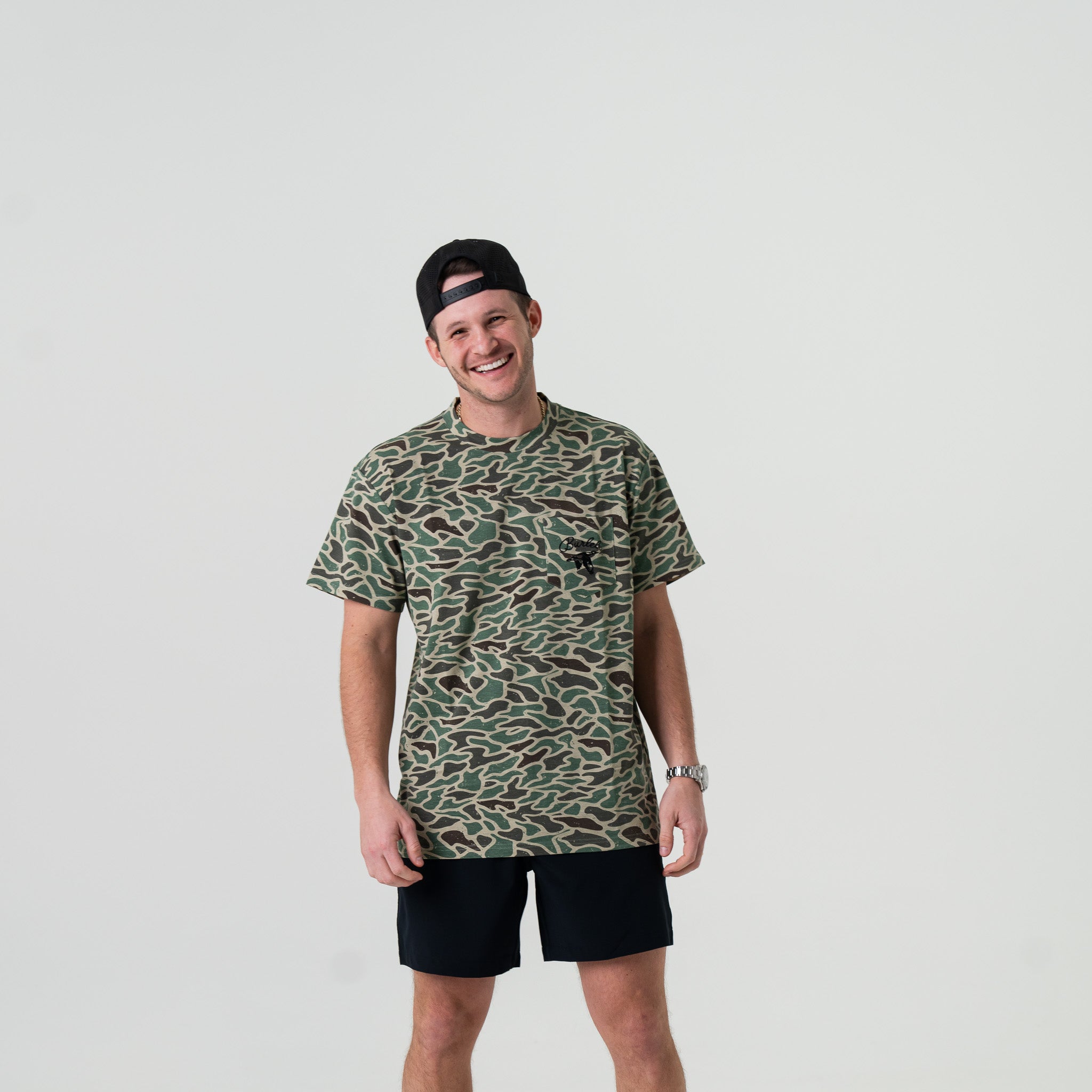 Short Sleeve Tee – Retro Duck Camo – Burlebo Outdoors Pocket Tee
