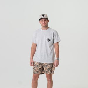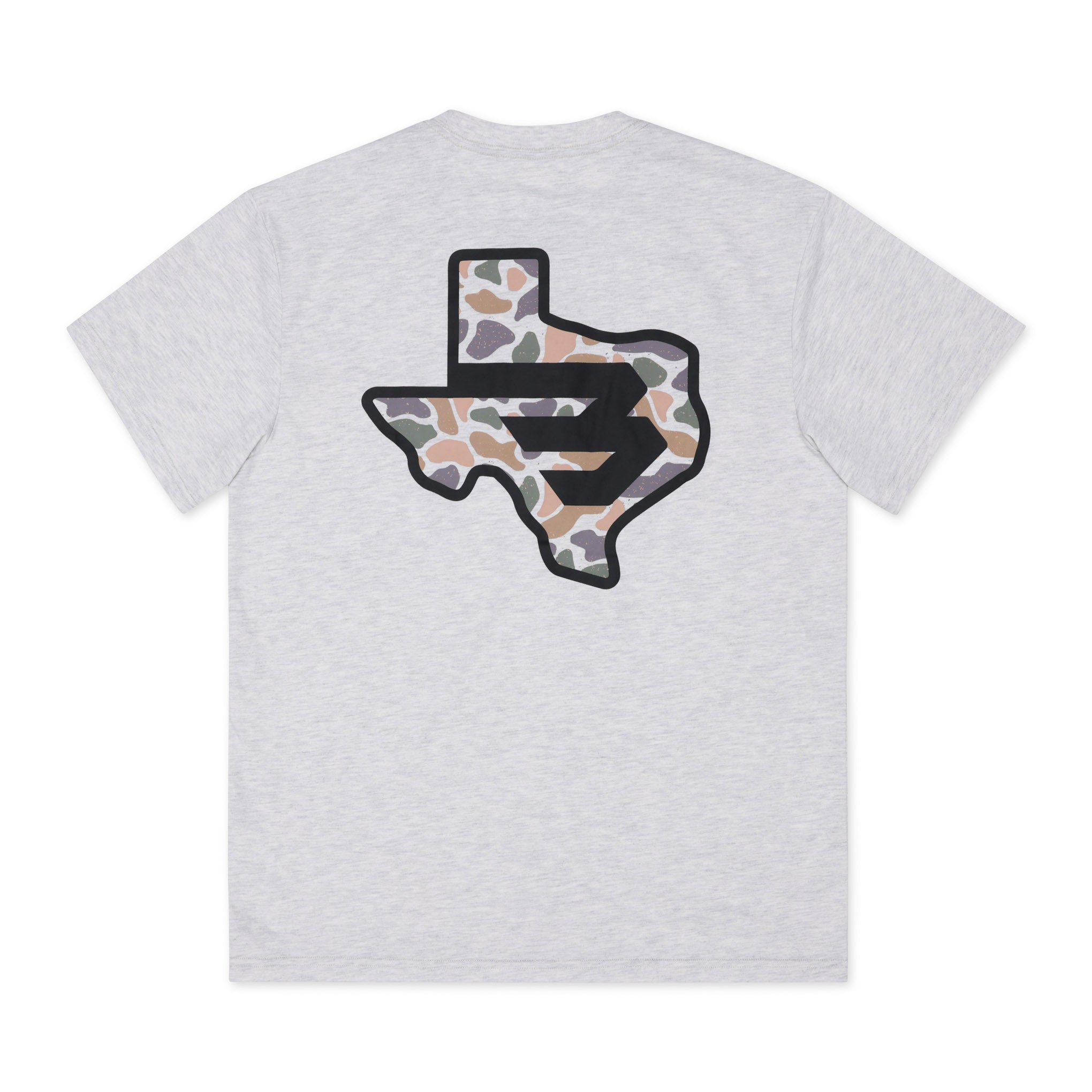 Short Sleeve Tee – Texas Camo Flying B Logo – Heather Ash Grey