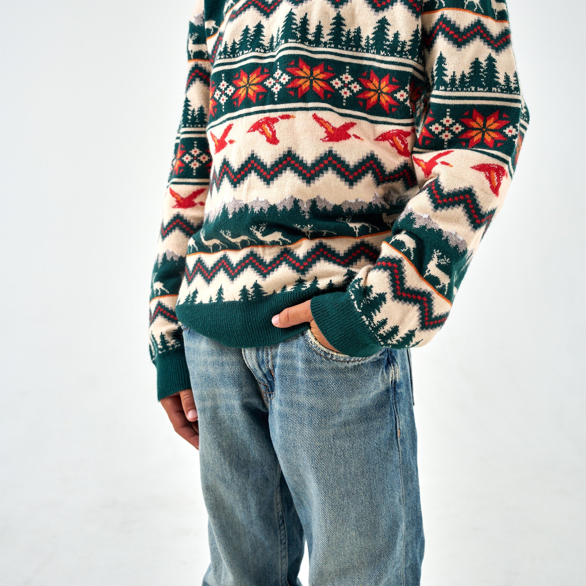 Bring the holiday spirit to the great outdoors with the BURLEBO Christmas Sweater. Featuring a custom pattern of deer. ducks. evergreens. and mountains. this festive knit blends classic Christmas vibes with rugged. outdoor roots. With a soft feel and comfortable fit. it’s perfect for campfire parties. holiday photos. or your next ugly sweater contest—though we’d argue it looks too good to be called ugly.