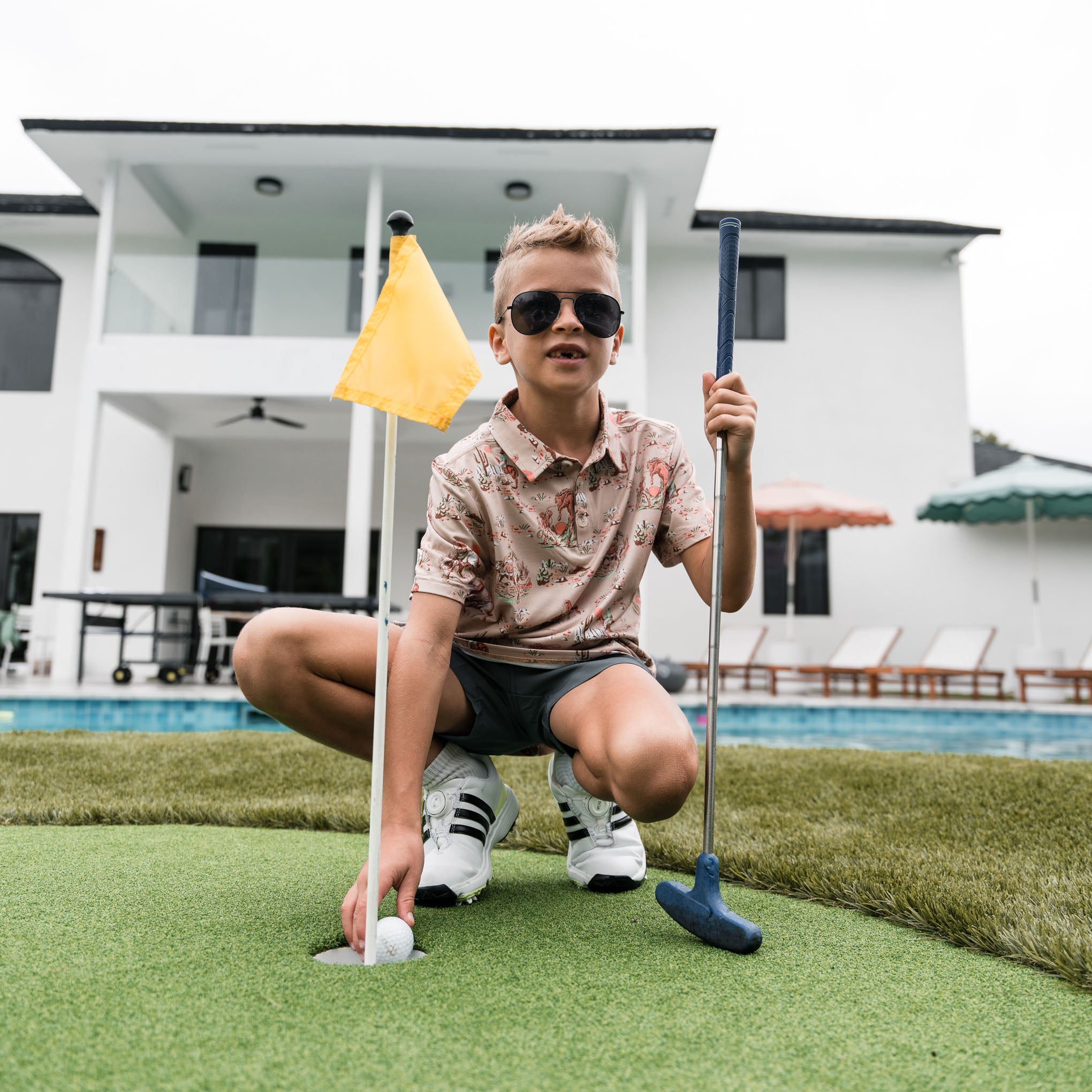 Youth Performance Polo – Cowboy Up Khaki