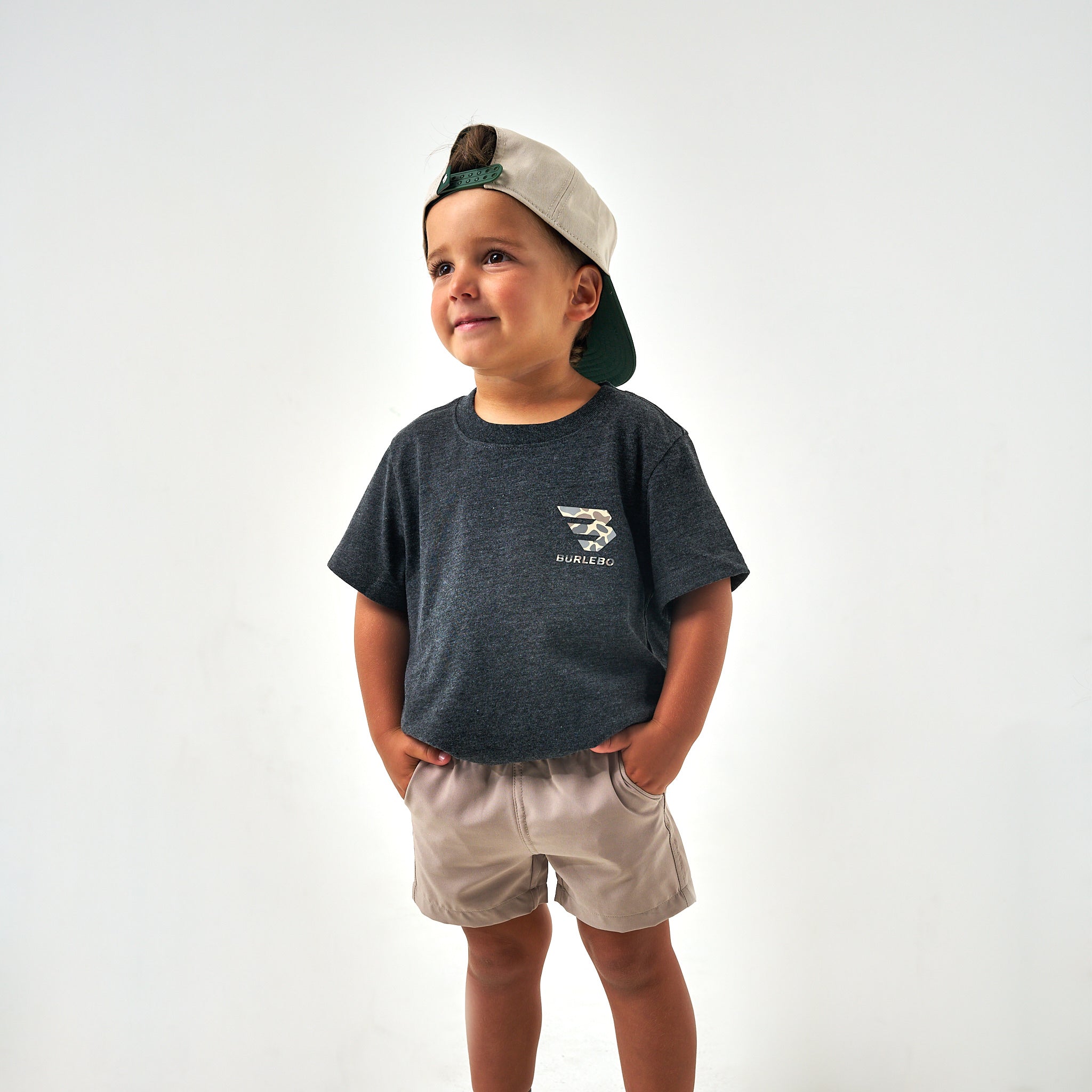 Youth Short Sleeve Tee – Flying B Deer Camo Logo – Heather Black